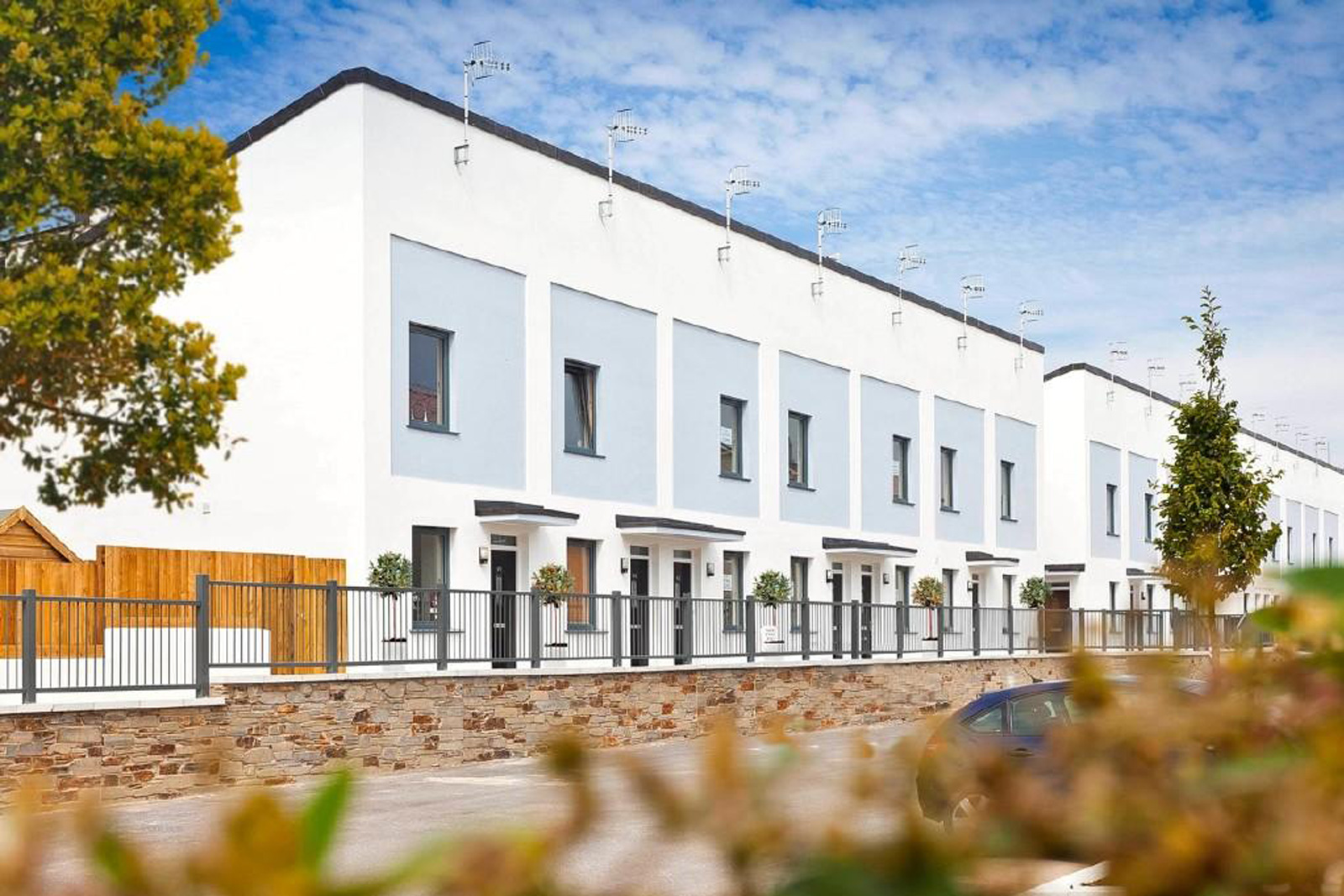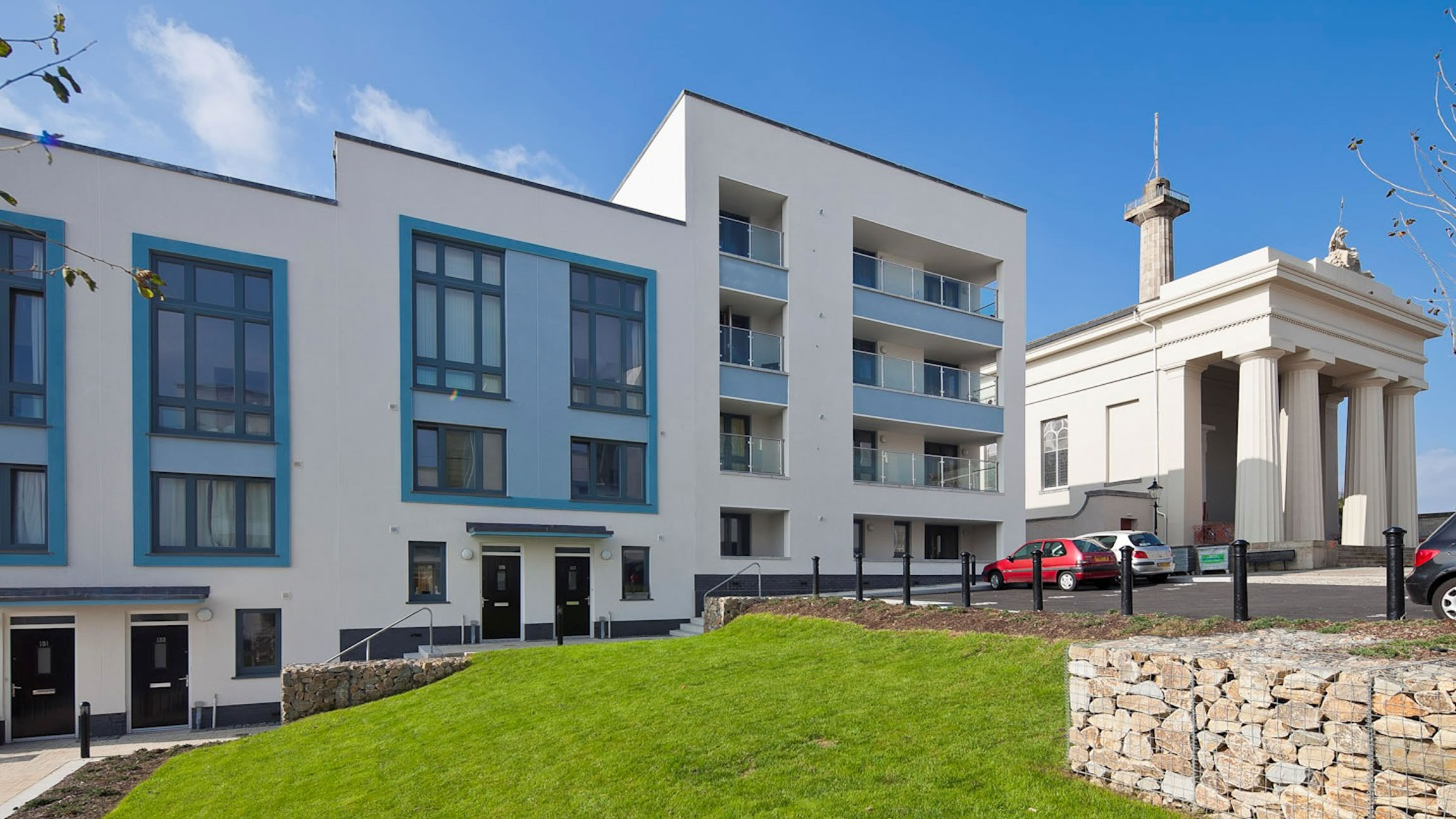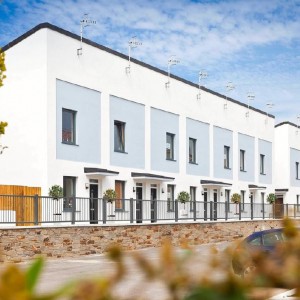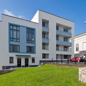For this particular phase of works the Redland’s mini stonewold concrete tile was the specified roof covering, concrete tiles were introduced in the 1950’s as a cost effective alternative to clay tiles and have become one of the most popular choice of roof covering across the UK. One of the benefits of this materials is the easy and speed of which it can be installed in, reducing materials and labour time making it a cost effective solution. Sarnafil single ply was chosen to cover flat roofs of apartment and office blocks.