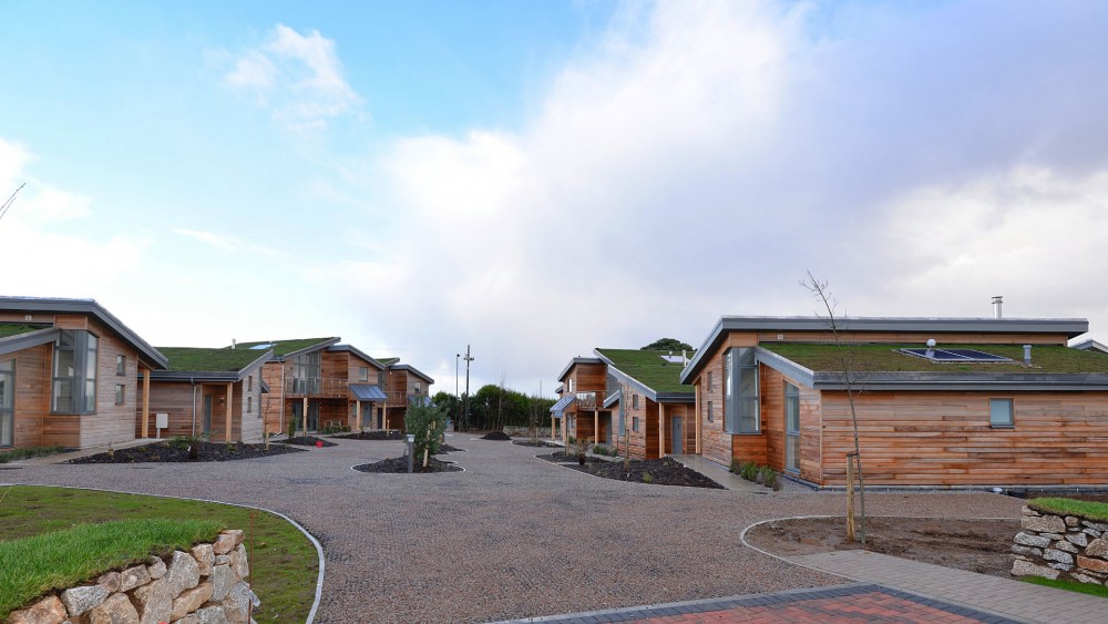 Western Counties Roofing work together with market leading horticultural consultants, to design bespoke green roofing solutions, ensuring the correct waterproofing systems are installed to suit the individual project criteria for the green roof. Green roofs consist of several layers of a growing medium planted over a waterproofed roof surface. The waterproof membrane installed as the base for the green roof was Cefil RP, a total of 1400 meters squared was required for the project. Cefil pride themselves in staying at the forefront of leading edge technology in waterproofing systems and is BBA certified to have a life expectancy in excess of 25 years. Cefil RP is cross reinforced with a woven high tensile polyester carrier, engineered to with stand severe wind loads and the most extreme weather conditions and suitable of all types of intensive, extensive or bio-diverse green roofs. An extensive green roof system was specified which consists of a lightweight hardy mat of sedum vegetation and requires little maintenance. 200 meters squared of natural Brazilian slate was installed as vertical wall panels.